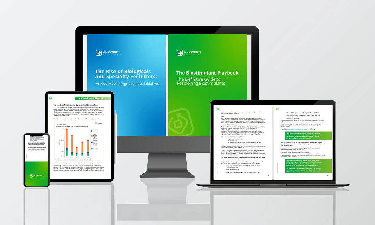Get a free 1-month subscription to Upstream Ag Professional with the purchase of The Playbook PLUS get a complimentary Upstream Ag Insights Foundation Series article, The Winners Mindset: Influencing the Market vs. Letting the Market Influence You, a crucial view for being successful in the biostimulant market.