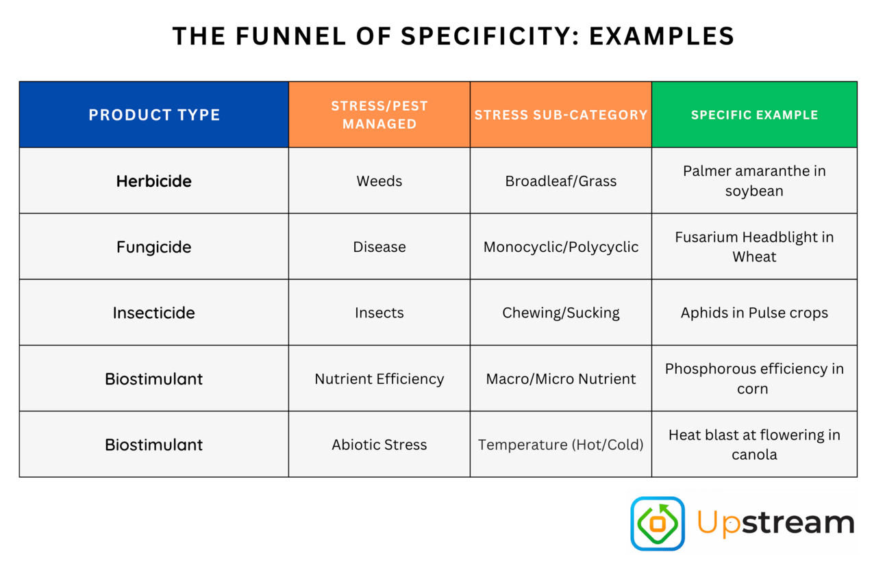 At the base of the pyramid are Foundational and Functional products— things like land, seed, fertilizer, and basic crop protection. These are used every year regardless of price or weather outlook. These are essential.