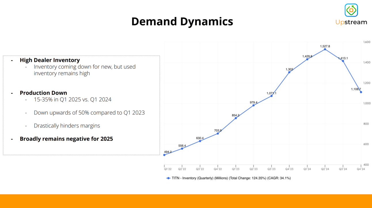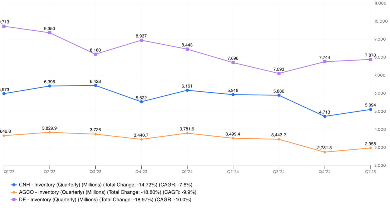 Inventory is $1 billion lower since Q1 2024, with the largest CNH dealer (Titan Machinery) having its inventory down drastically over the last two quarters.
