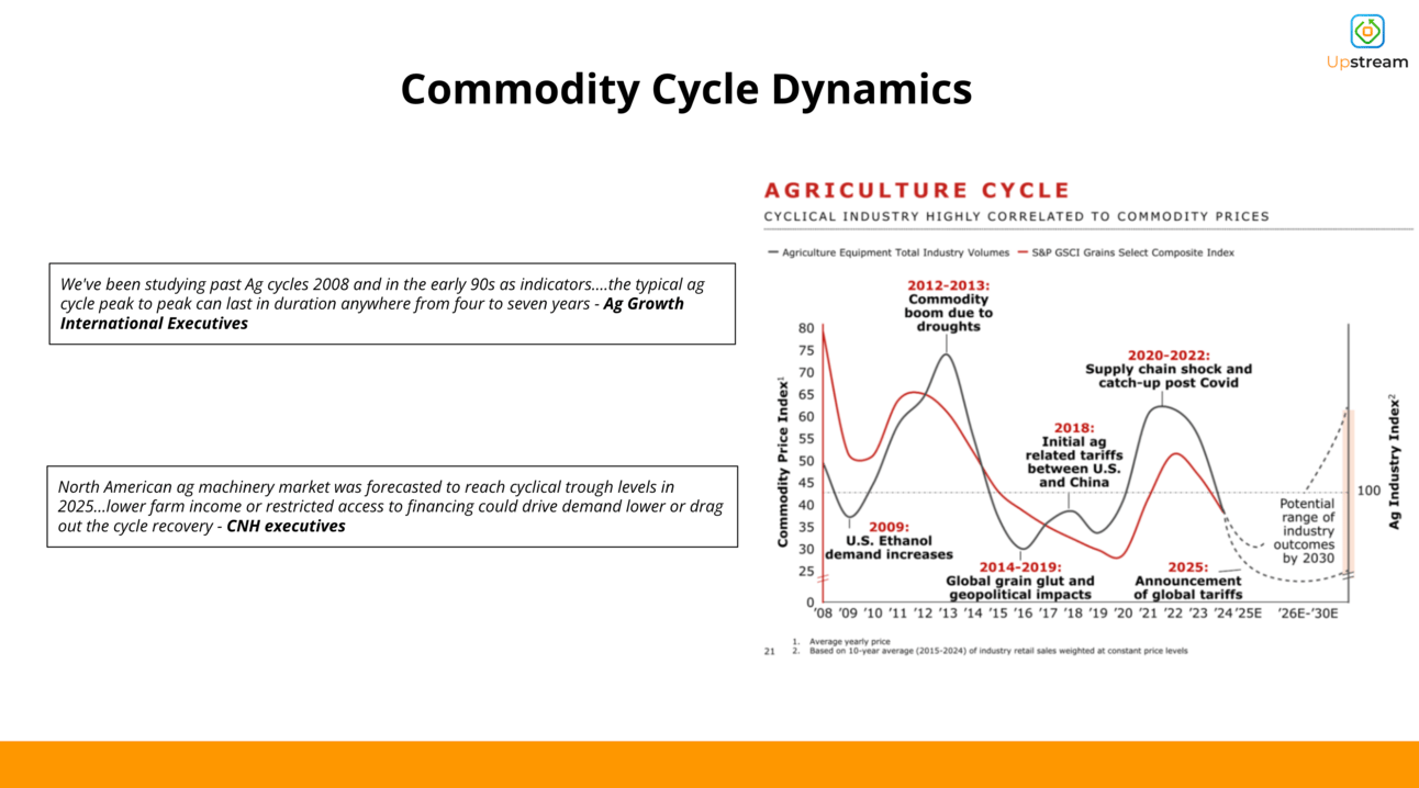 During their investor call, CNH shared an image of the commodity cycle illustrating the range of outcomes by year: