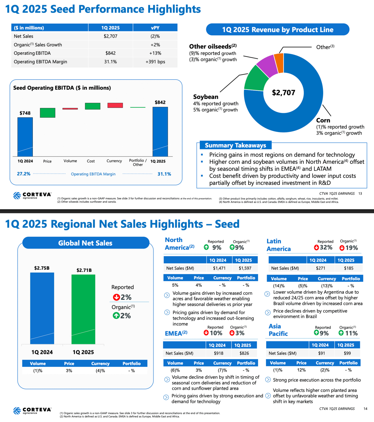 Seed sales: $2.71B (↓2%, but +2% organic), EBITDA up 13%