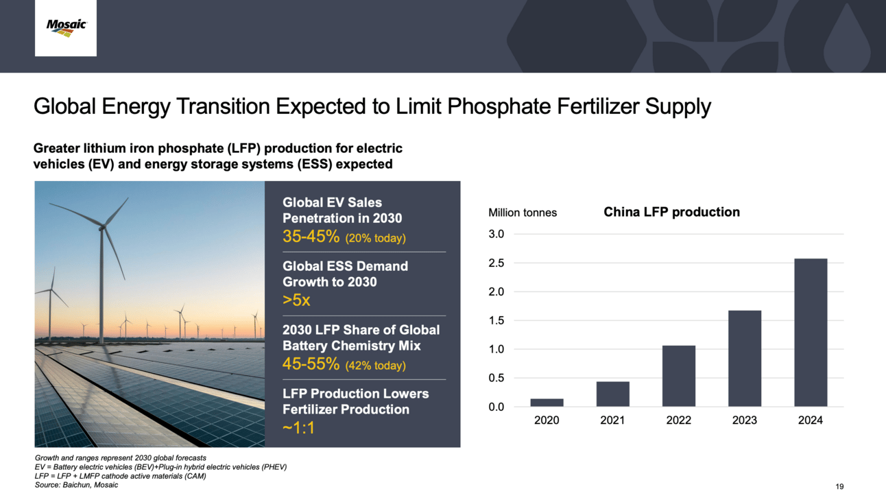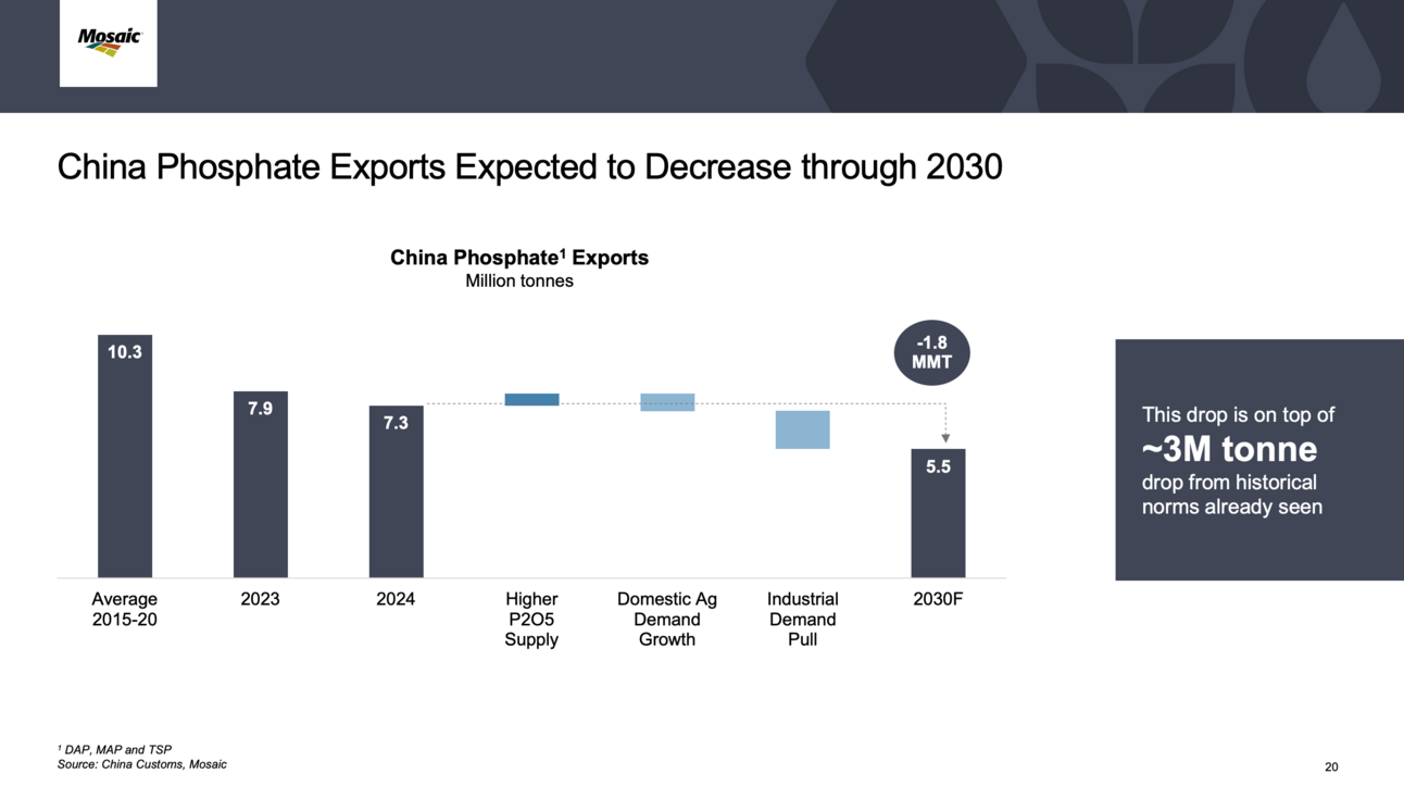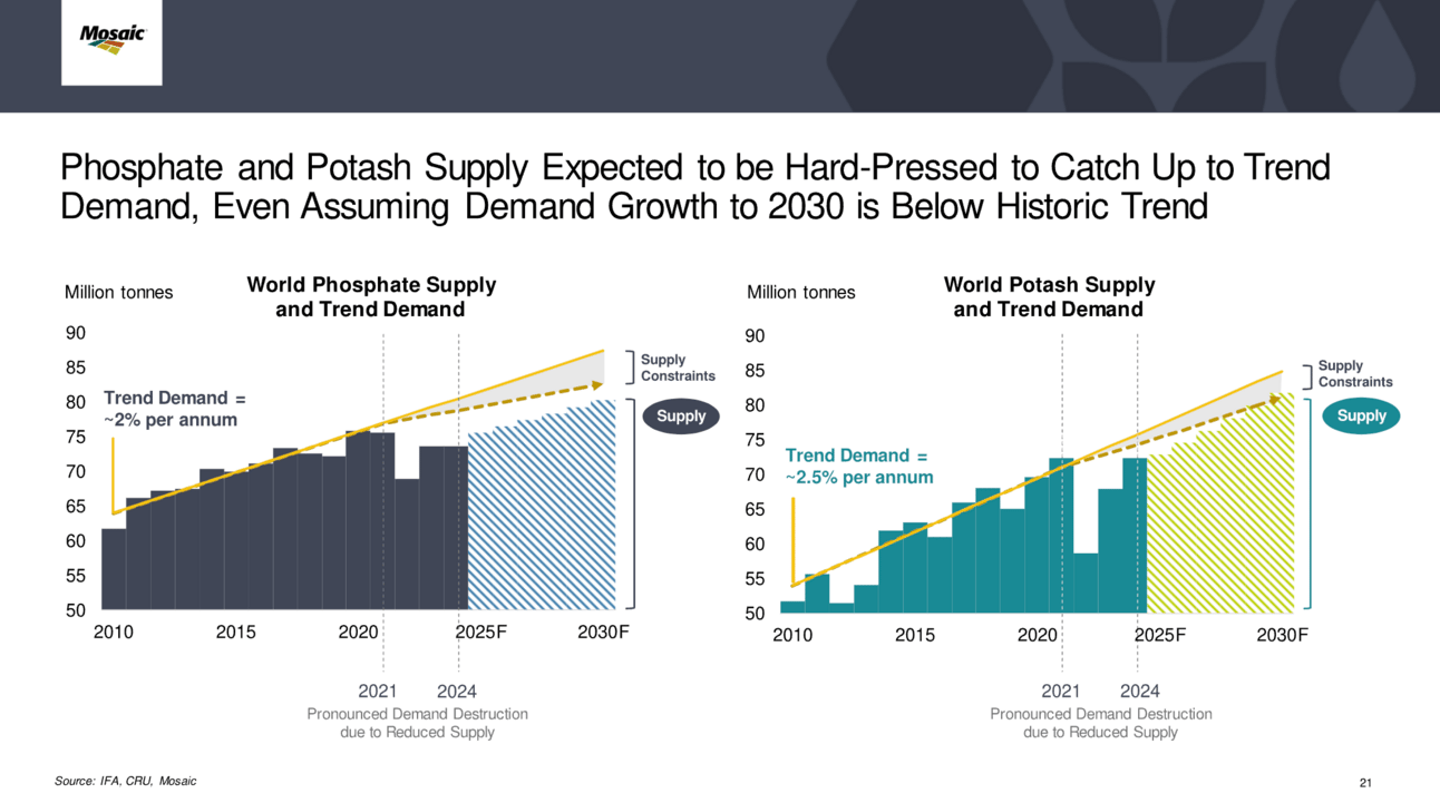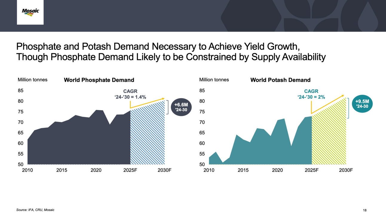 Mosaic sees demand increasing at a 1.4% CAGR for Phosphate and 2% for Potash out to 2030: