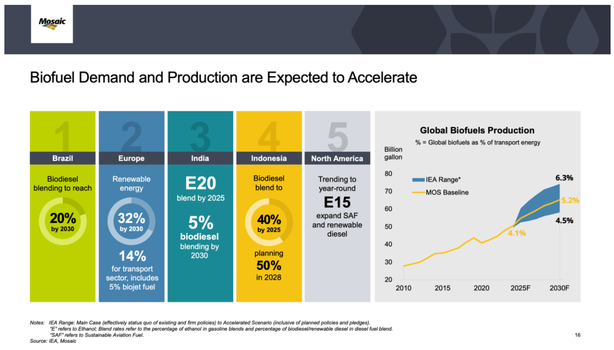 Plus, demand for Biofuel expected to accelerate according to Mosaic: