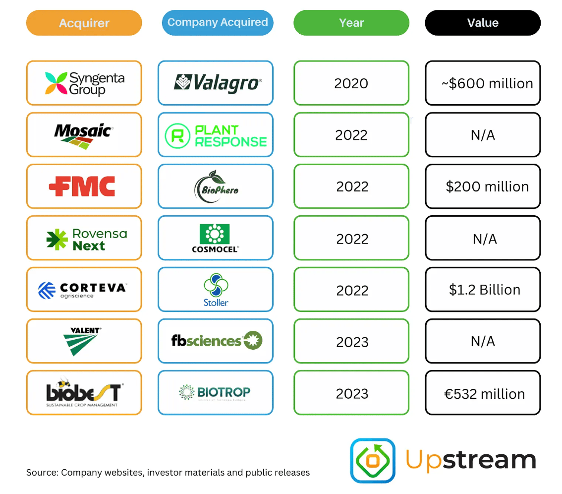 The below article goes through both biostimulants and biocontrol products and companies.