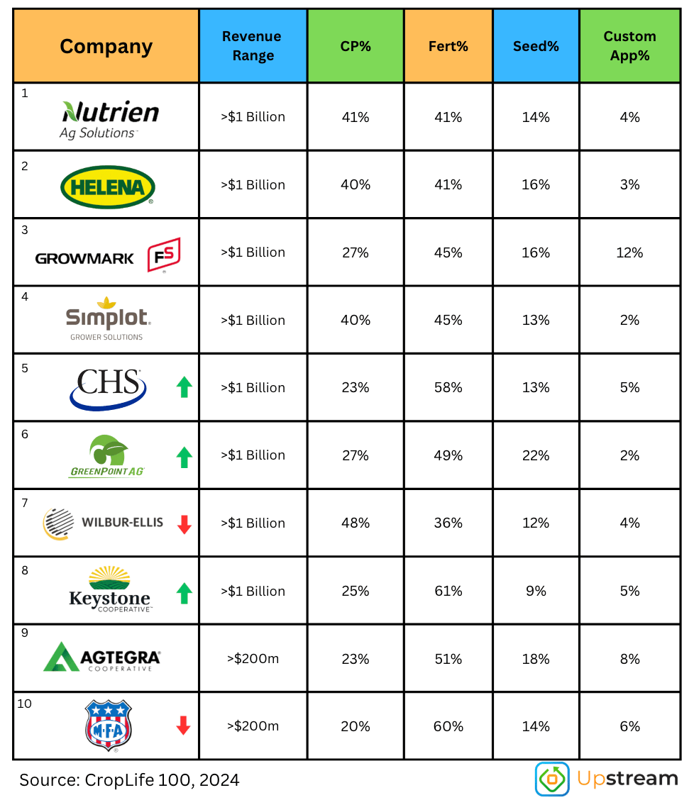 The latter half of the top 10 had some subtle changes, with Greenpoint, CHS and newly merged Keystone (Co-Alliance and Ceres) moving up the rankings, and MFA and Wilbur-Ellis sliding subtly.