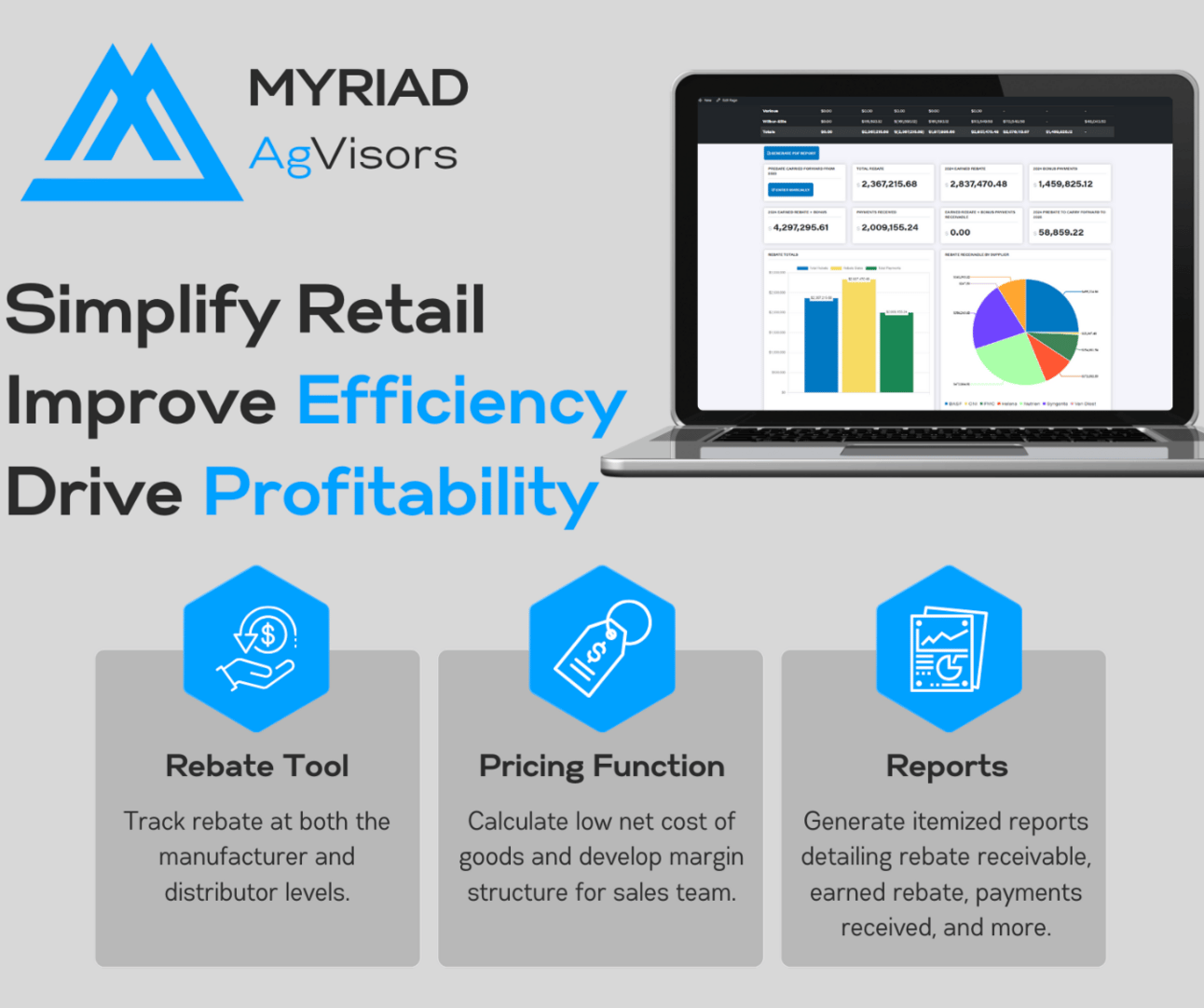 Myriad AgVisors is a comprehensive software platform designed to help ag retailers improve administrative efficiency and drive company performance.