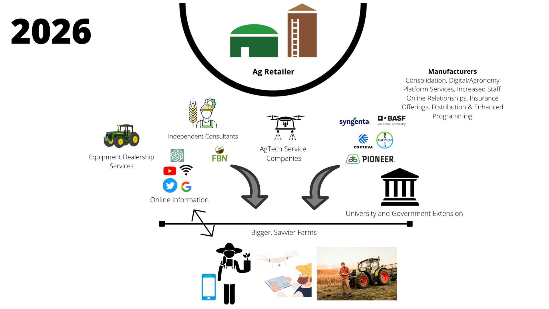 Ag retail is largely homogenous today. Most retailers compete on the same dimensions with similar offerings, differentiated mainly by relationships.