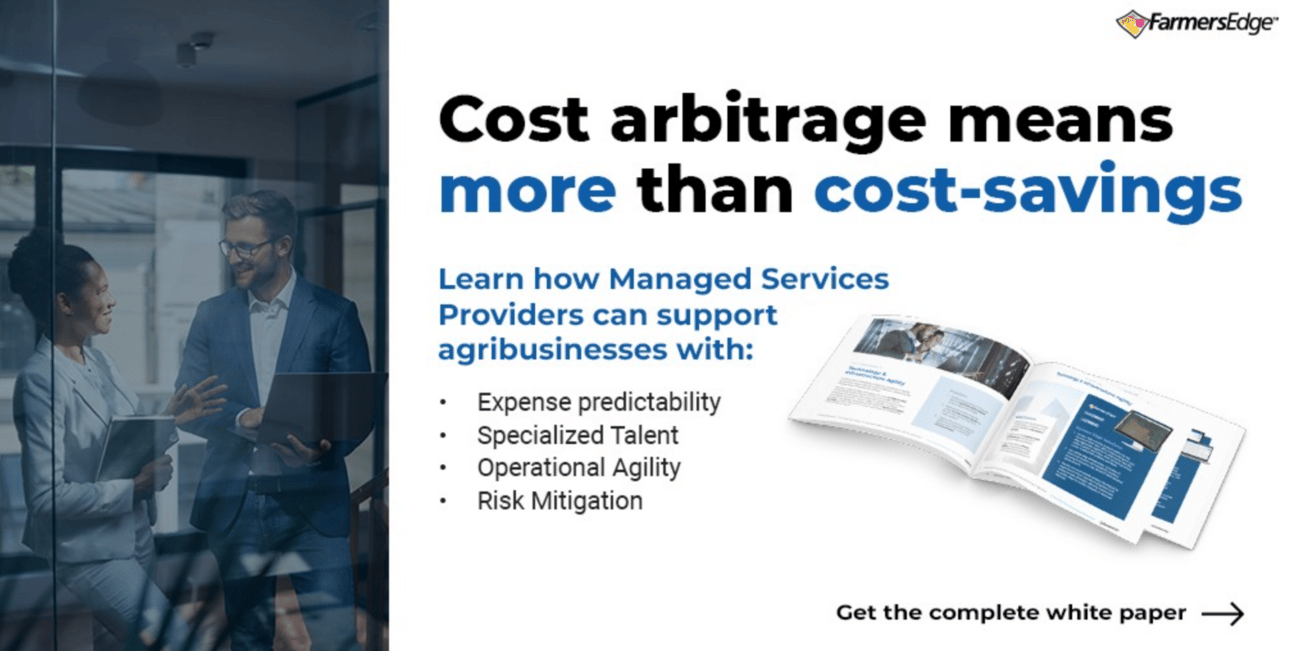 Cost arbitrage is a powerful strategy that allows businesses to reduce operational costs without compromising quality. In sectors like agriculture, where margins are often tight, this approach can drive significant efficiency gains. By strategically outsourcing technology services through Managed Services Providers (MSPs) like Farmers Edge, agribusinesses can tap into a global pool of expertise and reduce tech spend by an average of 30%.