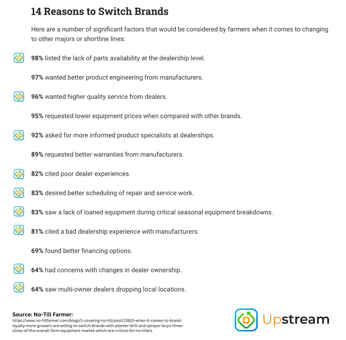 Of the major reasons cited, nine of them were unrelated to the piece of equipment or manufacturer themselves. They were directly related to the support from the dealership: