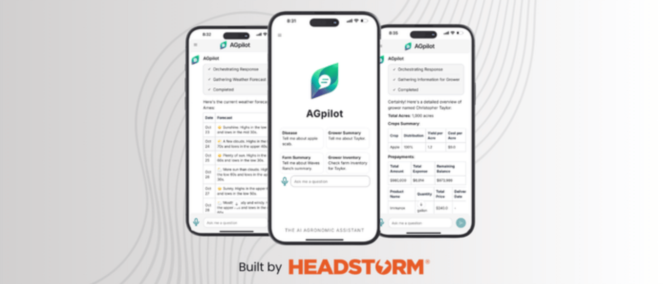 AGpilot is an app that utilizes Gen AI to seamlessly integrate grower-advisor interactions with vast troves of both external and internal data. Leveraging sources such as Microsoft's ADMA solution for external data, and proprietary data repositories developed by ag retailers, AGpilot transforms raw information into actionable insights in real-time. By automating research tasks and consolidating relevant data, AGpilot empowers advisors to perform their duties more efficiently and effectively.