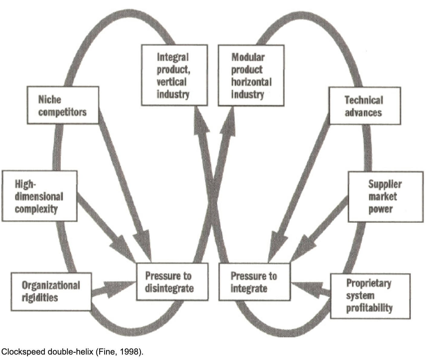 Investor sentiment, macroeconomic context, and prevailing narratives all influence corporate structure decisions and how they are rewarded or penalized. Not to mention, changing industry dynamics that pressure integration and disintegration, as thoughtfully illustrated by Charles Fine in his book Clockspeed: