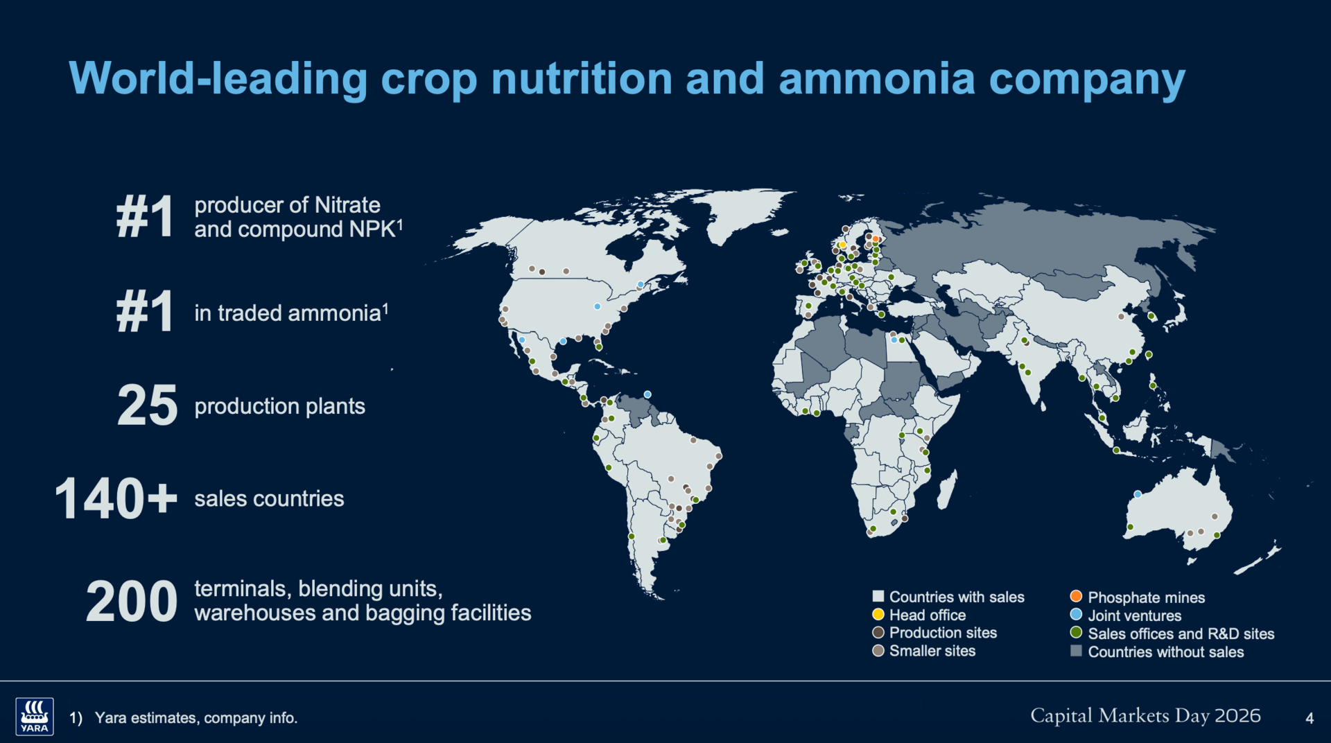 Excluding Chinese producers, Yara is the largest global player in nitrates and NPK and the second largest in ammonia.