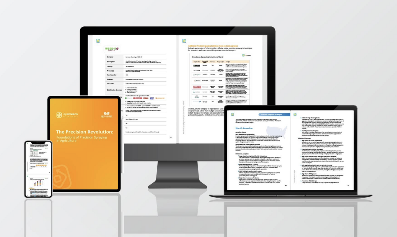 Over the last 6 months Upstream Ag Insights and the AgTech Collective dove deeply into the precision spraying segment to create the definitive guide on what’s happening in the precision spraying segment—delivering insider intelligence that helps you make strategic decisions in your business surrounding precision spraying.