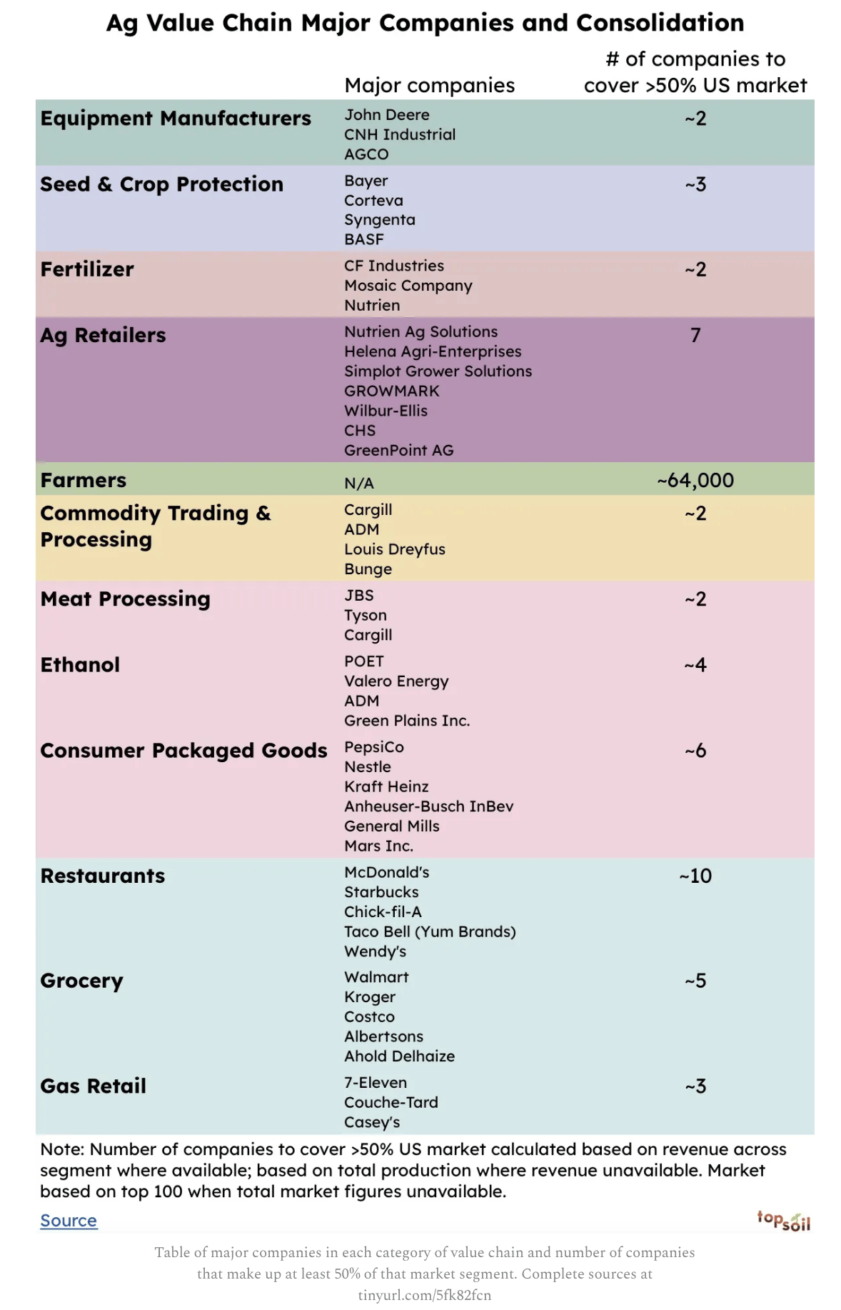 The agrifood value chain is highly consolidated upstream and downstream with farmers sandwiched in between.