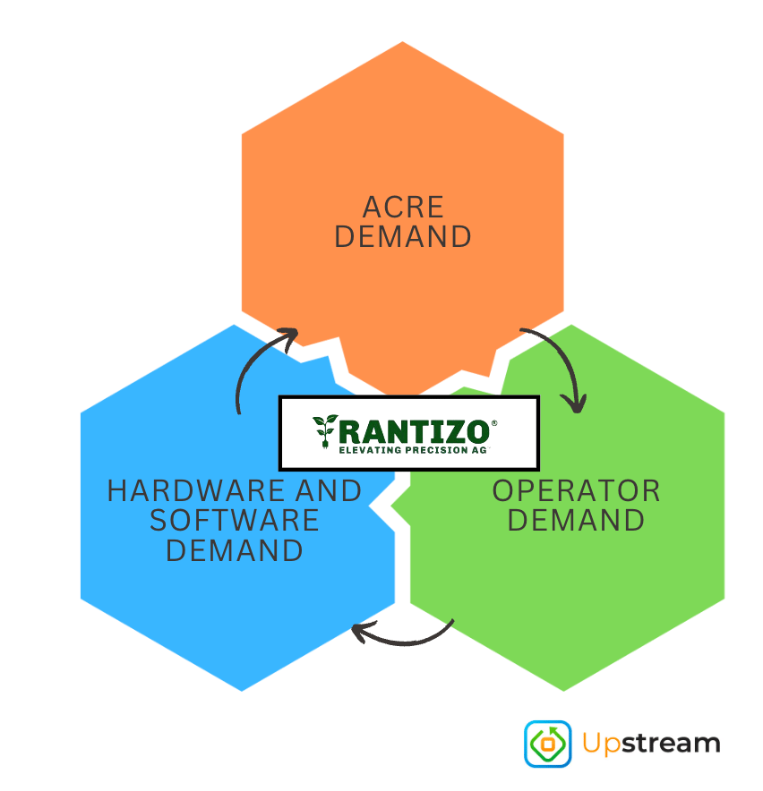 Rantizo knows that if they can create demand for drone application acres and they can make it easy to get set up with drone application capabilities, their business will grow: