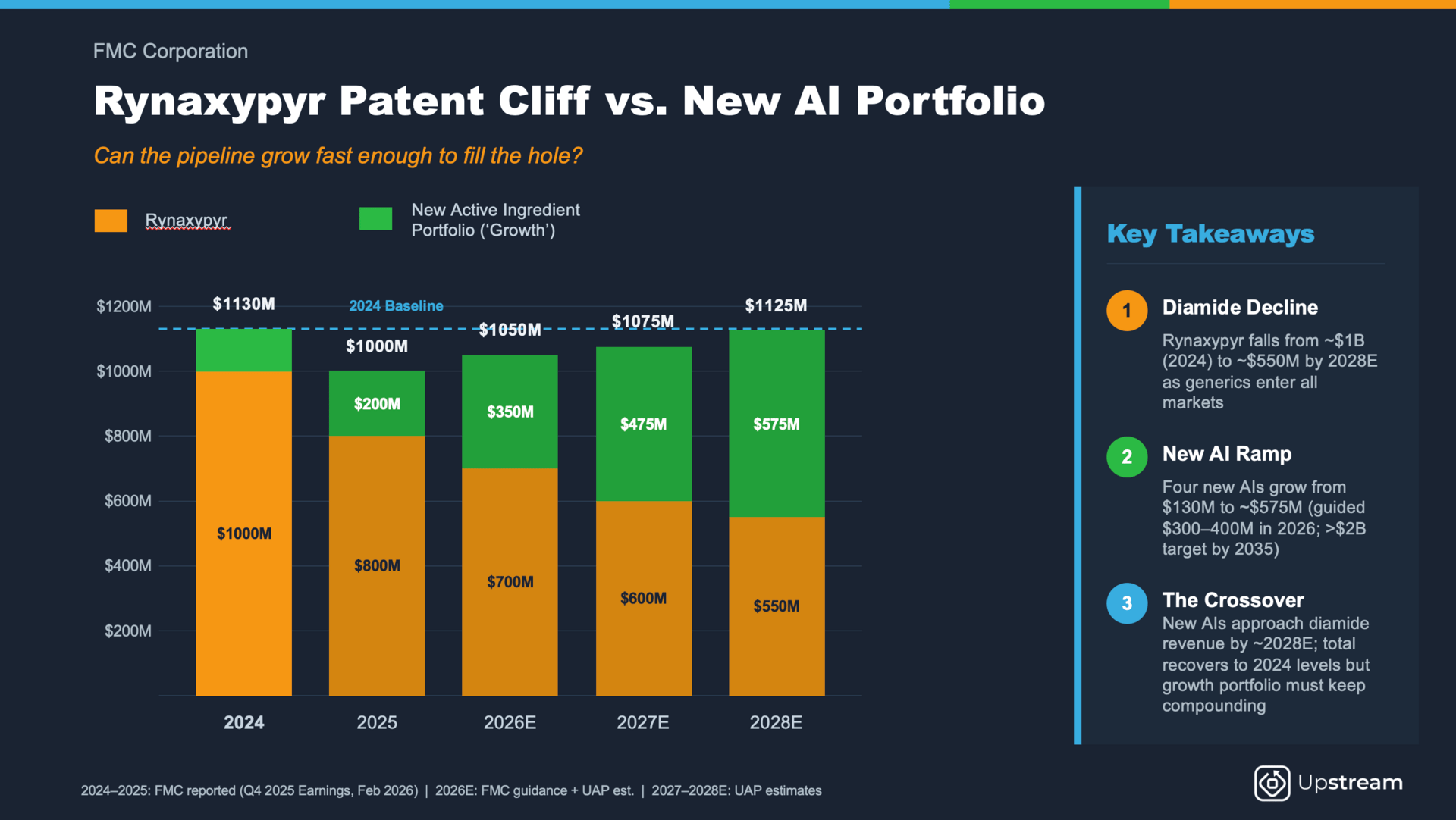 Rynaxypyr still generated around $800 million in FY25, but patents are expiring across all major markets by the end of this year. Roughly $1 billion of the core portfolio faces Chinese generic pricing pressure. Free cash flow was negative $165 million last year and is guided to approximately breakeven in 2026.